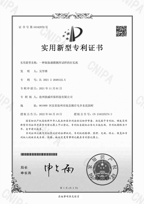 • 膜測厚試樣的打孔機專利